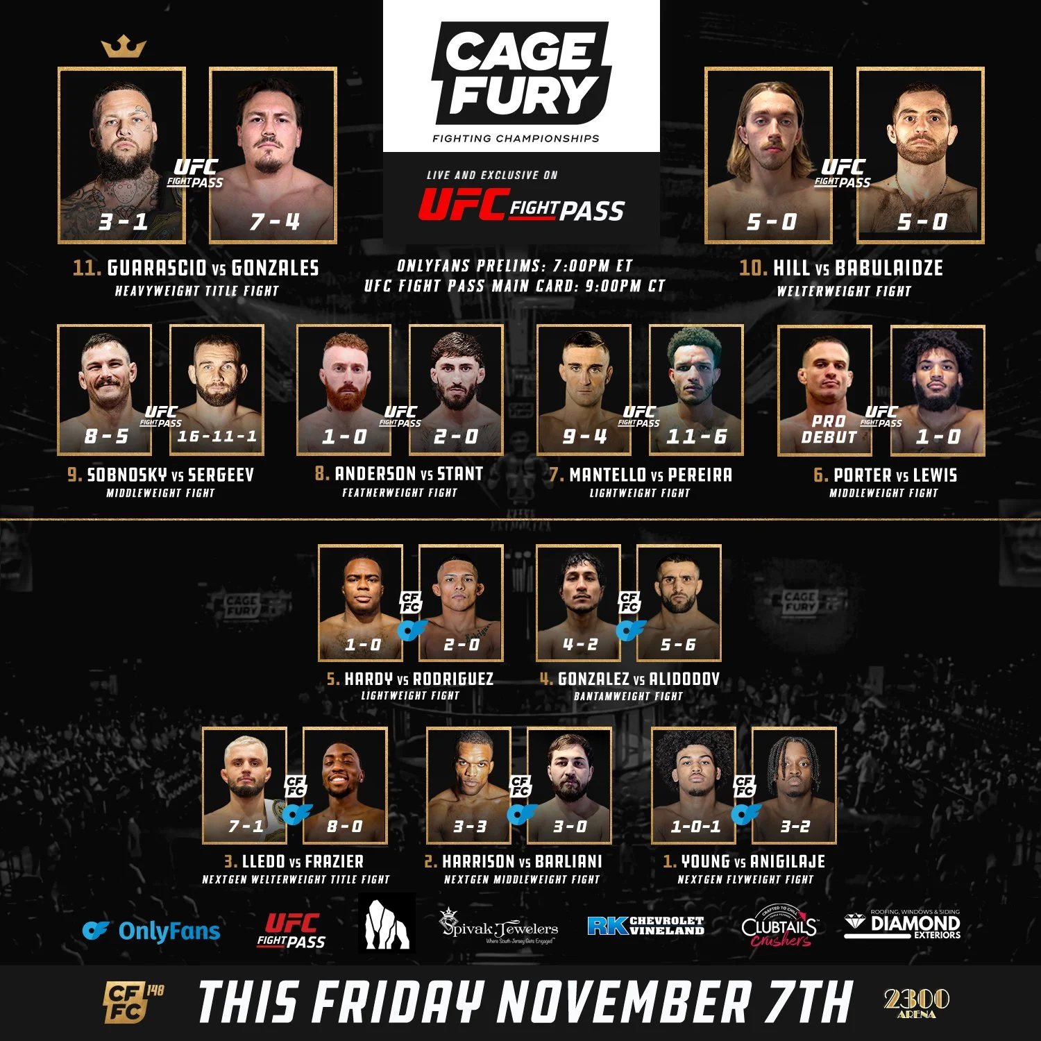 Guarascio looks to rebound from a September setback at Dana White's Contender Series and continue his chase of a UFC opportunity. Meanwhile, Gonzales is hoping to steal his shine, stepping in on short notice for the biggest opportunity of his career. Additionally, the night's co-main event features a pair of undefeated welterweight prospects looking for a breakout moment, as Itso Babulaidze takes on Kyle Hill.