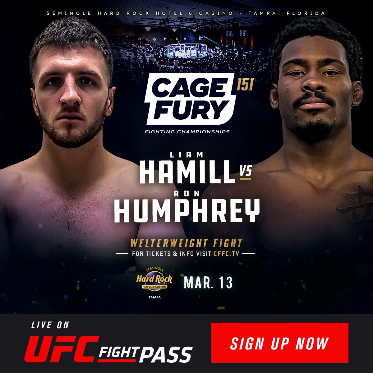 Cage Fury Fighting Championships returning to Seminole Hard Rock Hotel & Casino Tampa for CFFC 151 on Friday, March 13