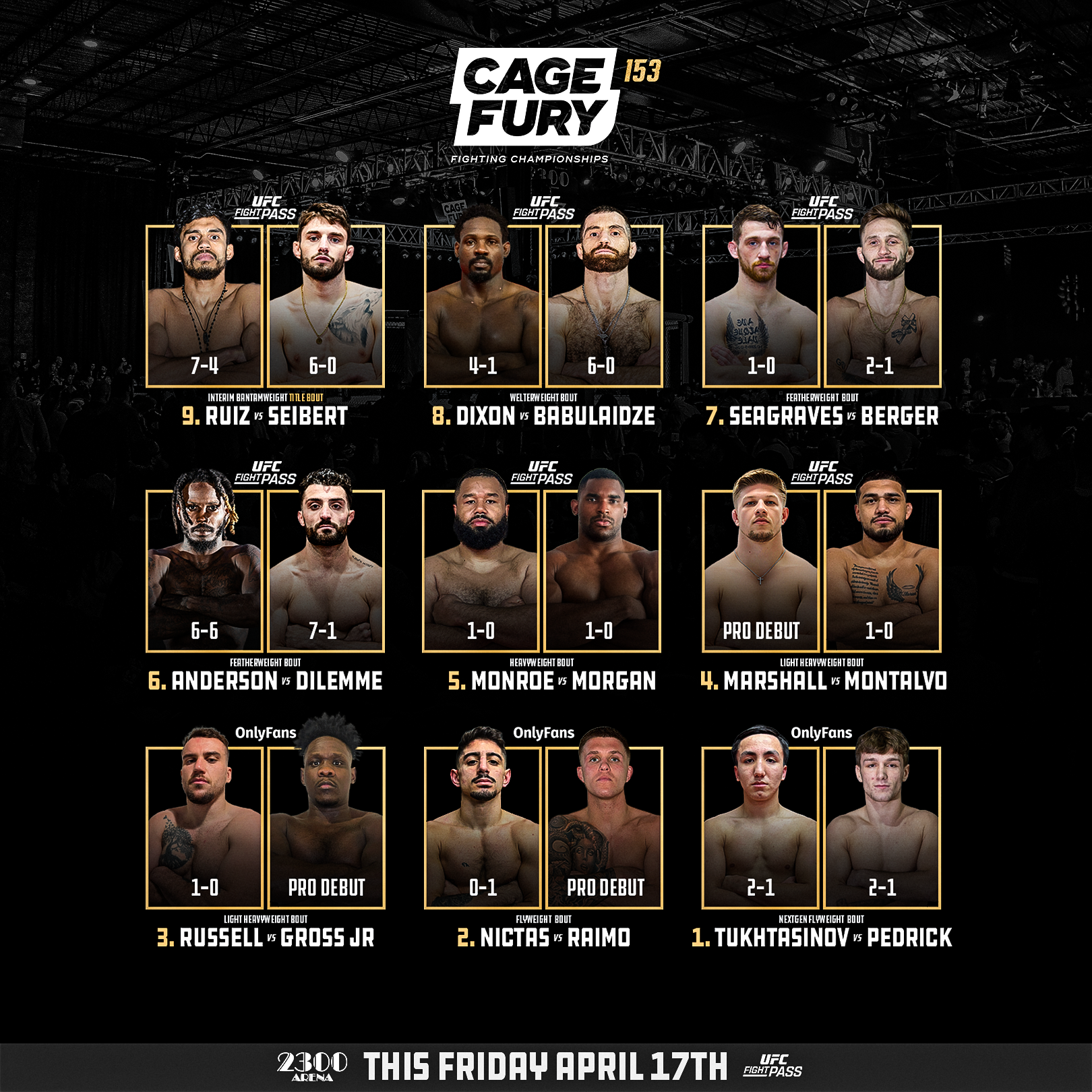 Meanwhile, Ruiz debuted for the promotion in 2025 with a win over Nodir Alidodov. Ruiz was then slotted to face CFFC reigning bantamweight champion Sean Mora in March before the Cuban titleholder withdrew from the event. Ruiz then immediately accepted a rescheduled matchup against Lucas Seibert for an interim belt.